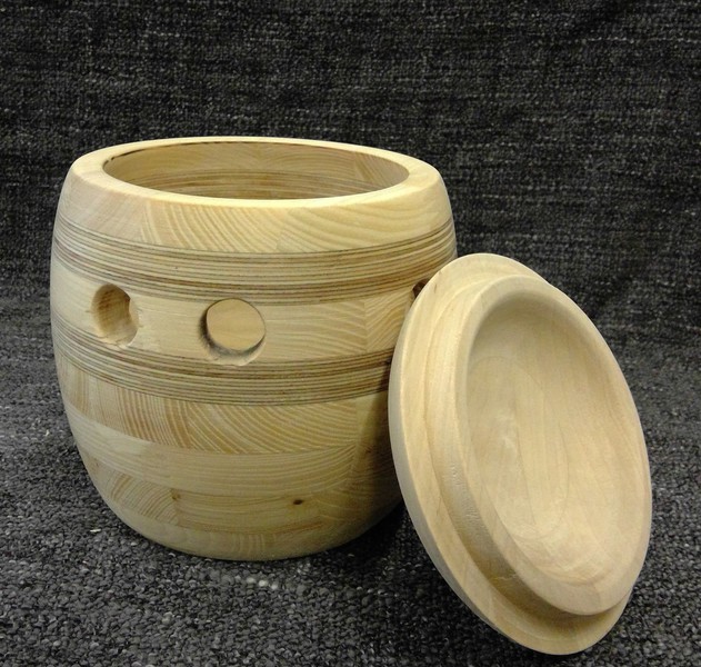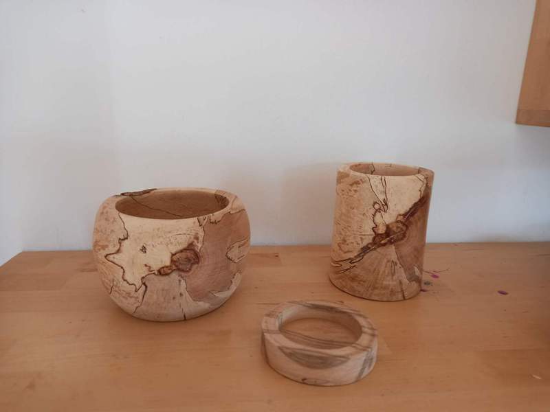 Als drittes ist dann eine kleine Dose mit Deckel vorgesehen, damit geübt wird, zwei passende Teile zu drechseln, der Deckel soll gut drehen. Das sind Angebote, wer lieber zwei Schalen oder zwei Dosen